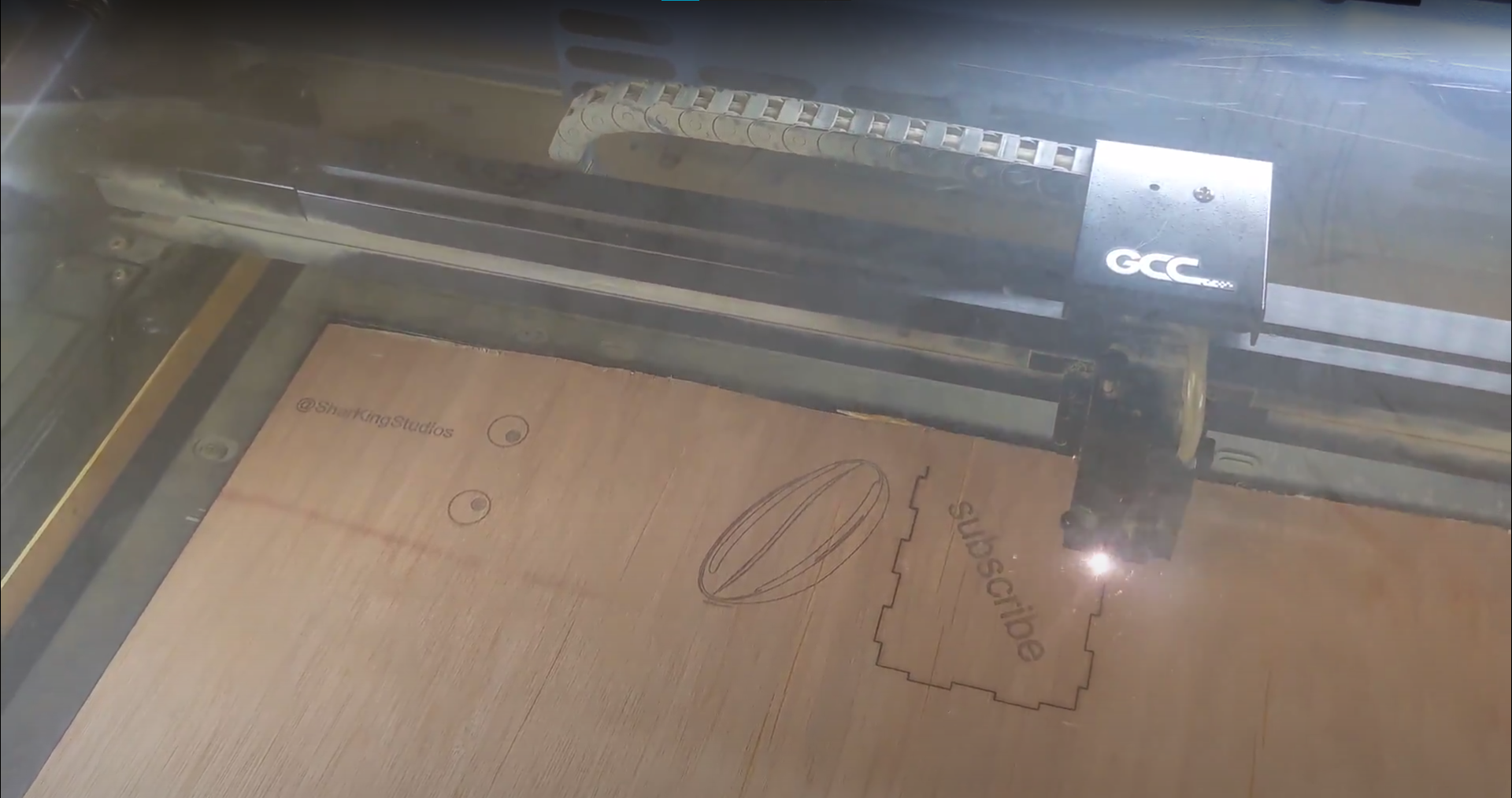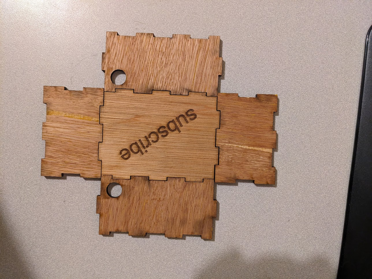 I used the laser cutter to cut out the wooden chassis. The holes for the motors were not large enough so I enlarged them with a file. I then put the chassis together with hot glue.