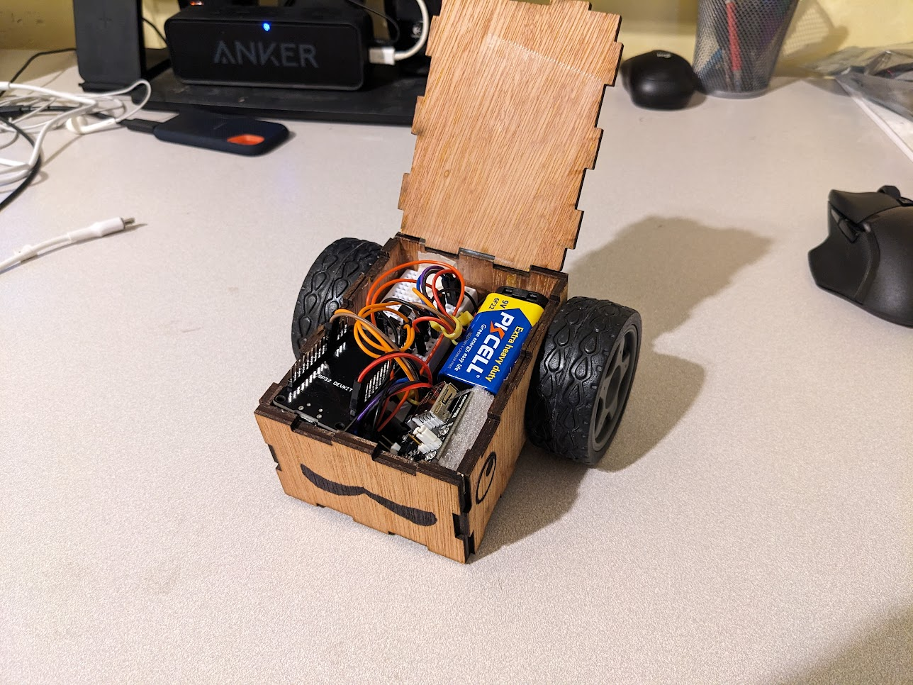 In this makerspace project I created a small robot that could connect to my Twitch chat and move based on what the chat wanted. It would tally collective votes in a time period and move based on the most requested direction.
