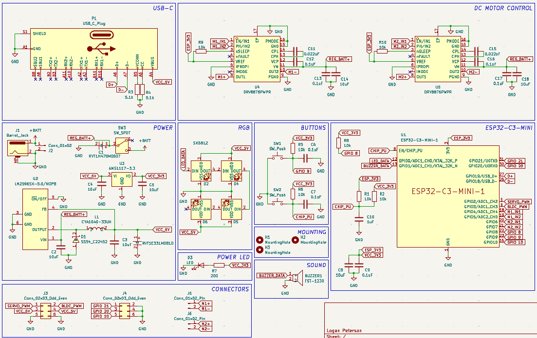 This is a do-it-all RC control board built around an ESP32-C3, designed to handle basically everything you might want on a DIY RC car: