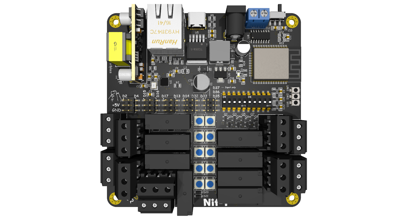 Nif-T is a wired smart-home automation controller built around an ESP32-WROOM-32E, designed to be the thing that actually flips real switches when you ask your house to do something.